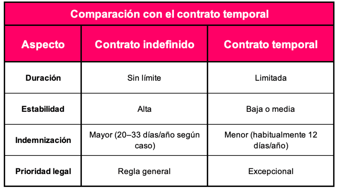 Comparación con el contrato temporal
